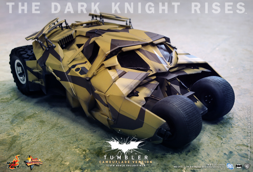 Hot Toys continues to unleash new 1:6 scale collectibles based on the soon-to-be-released epic Batman film finale, The Dark Knight Rises. Scheduled to ship in the first quarter of 2013, these items include the main villain of the movie, BANE, as well as a new color variant of the Tumbler featuring a desert camouflage.