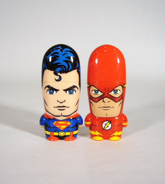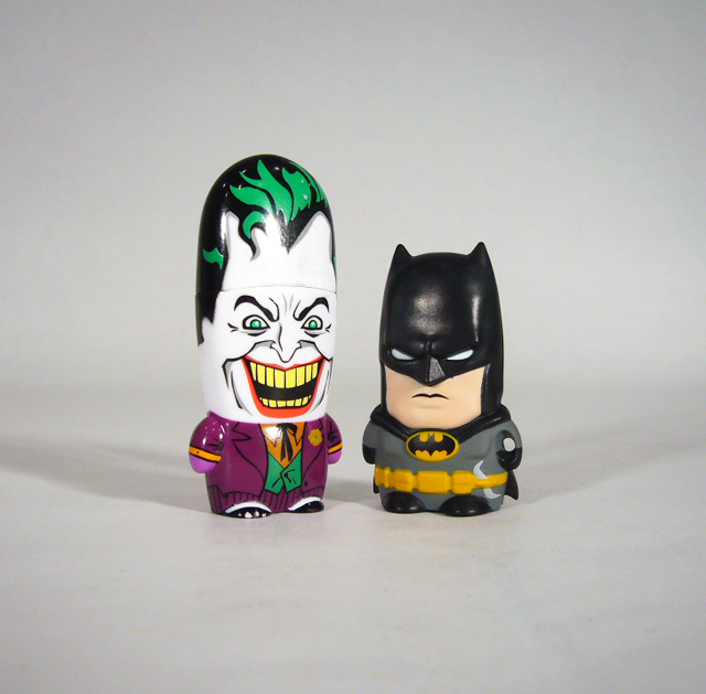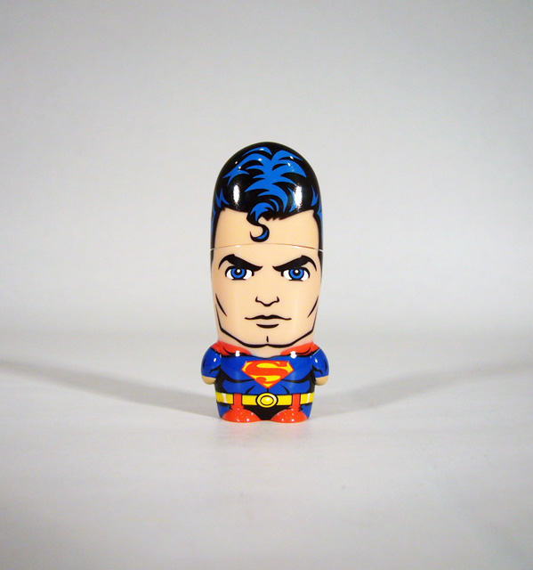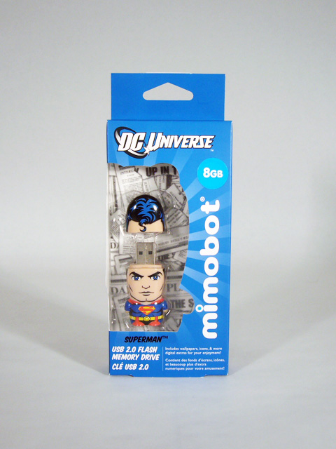 At Figures.com we’re big fans of Mimoco’s Mimobot USB flash drives with its cool collection of characters from DC Comics, Transformers, Star Wars, Hello Kitty, G.I. Joe, video games, and more. The best news for comic book fans is that Mimoco continues to roll out more great DC characters. First came multiple drive sets centered around Batman and Green Lantern (see our reviews HERE and HERE), and now they’ve expanded to a more global “DC Universe.” We’ve already taken a look at the new Flash and Dark Knight Rises Batman (check that out HERE). Today we’ll be looking at the all-new Superman Mimobot and the Batman Mimomicro from the new line of USB card readers!