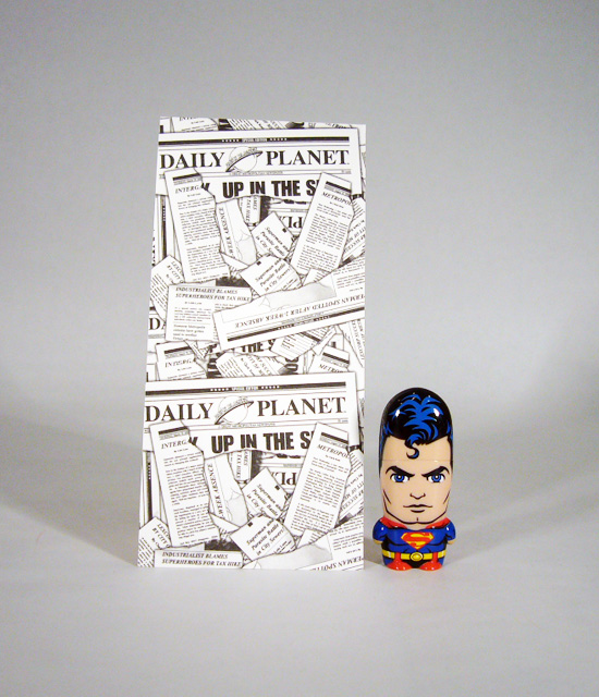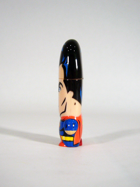 While the “New 52” Superman appearing in comics right now has a new fangled costume, the Mimobot Man of Steel is classic all the way down to the red trunks! As everyone knows, baby Kal-El was evacuated in a small rocket when his home planet of Krypton was destroyed. Good-natured Jonathan and Martha Kent found the crash-landed craft and raised the boy, whom they named Clark, to be an upstanding citizen concerned with truth, justice, and the American way. With Kryptonian abilities enhanced by our yellow sun Superman fights crime and super villains, his bold blue, red, and yellow costume representing the best in all of us. The Mimobot recreates look of Superman and his iconic outfit with the “S” shield on both chest and cape, yellow belt, blue eyes, and spit curl.
