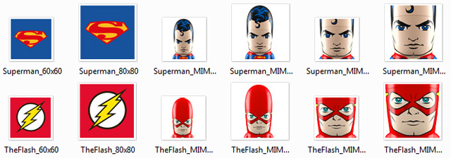 Once you’re done playing with your Mimobots you can also plug them into your computer! And when you do, you get not only high quality USB drives, but also fun “Mimory” components that let you customize your computer with exclusive DC Universe content. The Superman drive comes with content broken down into three categories. Avatars give you images to represent you online (Flash, Superman, and their logos for DC Universe). Icons presents you with images including character art, mini Mimobots, logos, and more that you can use to decorate your drives and folders. Finally, the Wallpapers folder has plenty of silly and fun images of the Mimobots in action in sizes designed for mobile devices, iPads, and all shapes and sizes of computer screens!