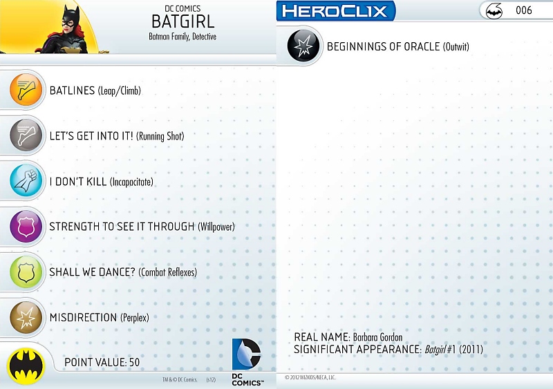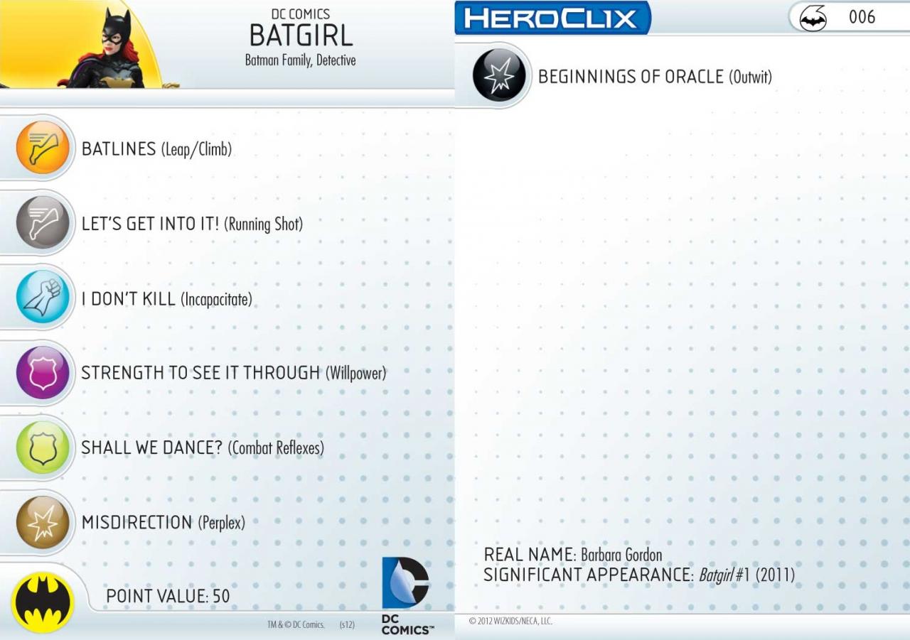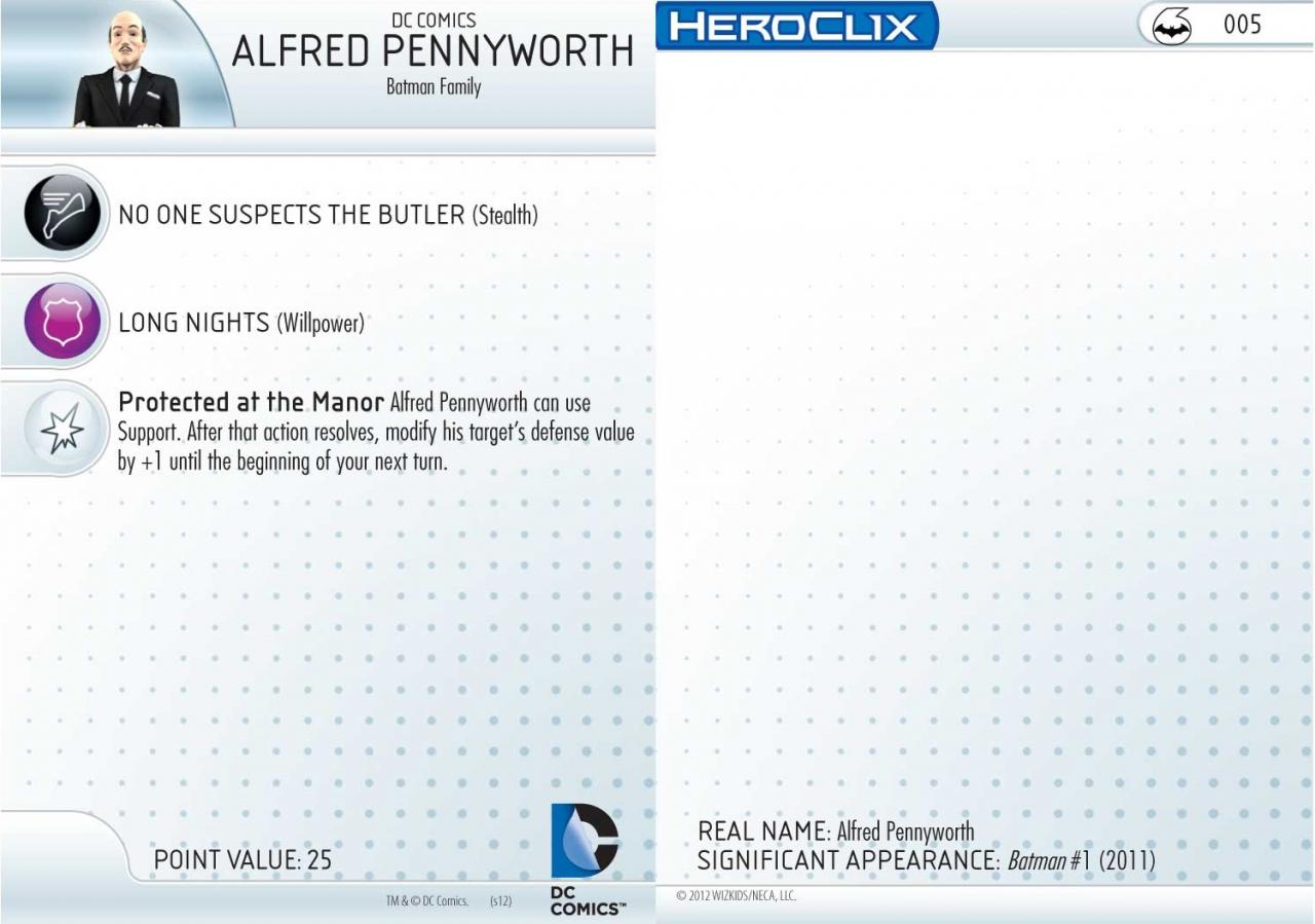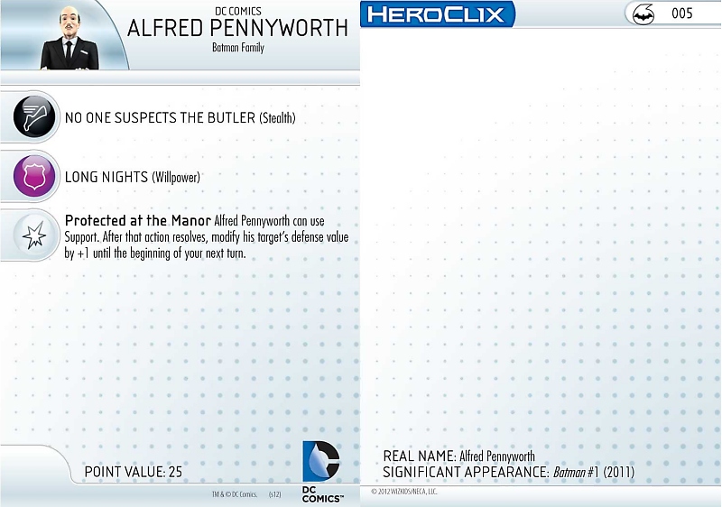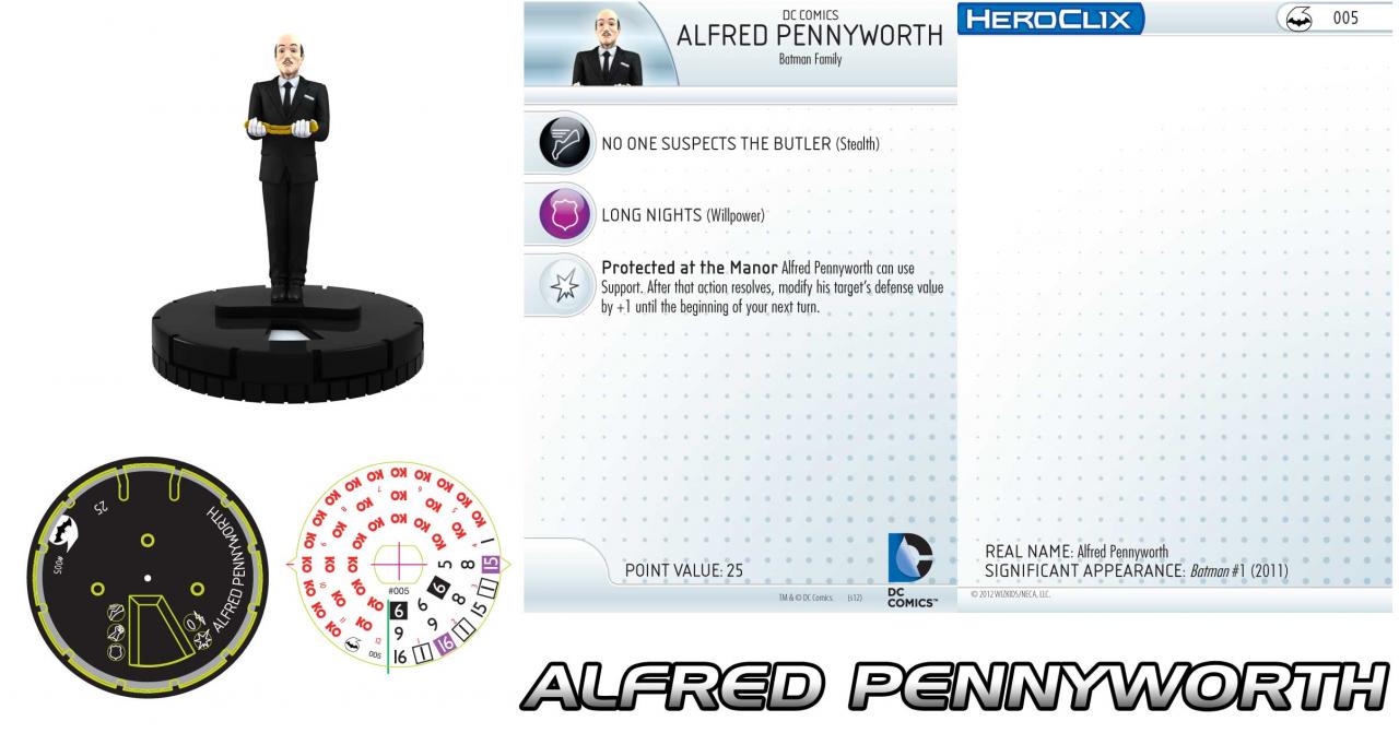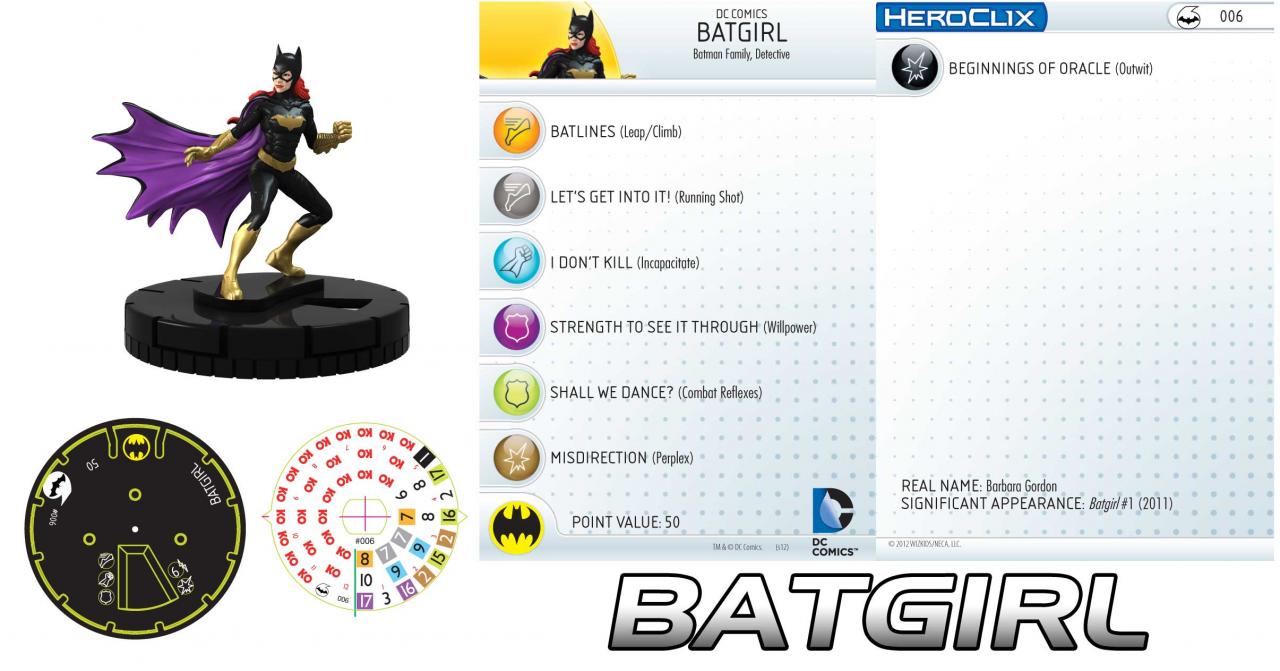 DC has returned Batgirl to her roots with Barbara Gordon (daughter of James Gordon), and of course faithful butler and jack-of-all-trades Alfred Pennyworth. While most of these characters have appeared in HeroClix in one way or another before, these are excellent new versions that will make players very happy.