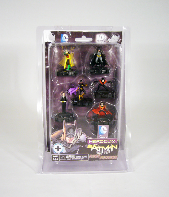 Players and collectors alike have been anxiously awaiting the return of DC Comics HeroClix in general and Batman in particular, but WizKids has gone above and beyond with this Fast Forces pack. The figures are all very playable and a lot of fun, and the maps are must-haves for any player. This Batman pack is scheduled to hit comic book and game stores everywhere on November 14th, the same day as the full booster set (the primer set should hit on Halloween to build excitement). As always, since you can actually see the Fast Forces figures in the package you should find the best ones with regards to any bent plastic or paint errors, but judging from this set you shouldn’t have any problems. It may be dysfunctional, but Batman’s Family is a lot of fun!