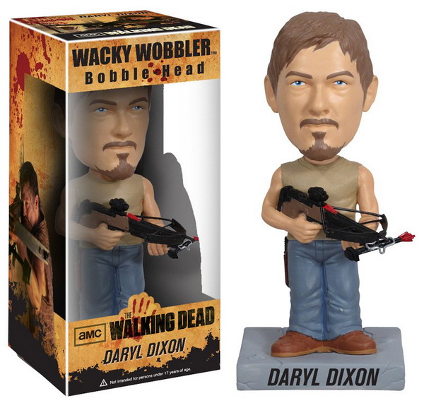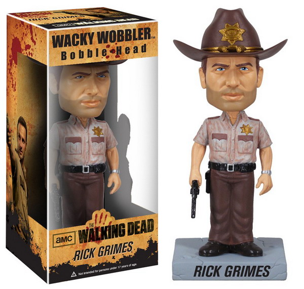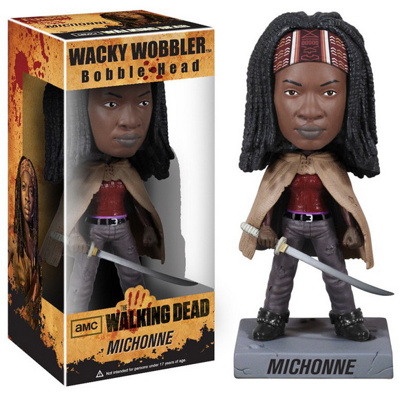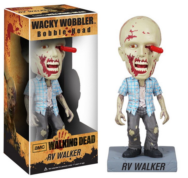 Lots of good things come in pairs. Bacon and eggs. Tom and Jerry. POP! and Wacky Wobblers. The latter are two brands that Funko uses with most all their new licenses, their latest The Walking Dead license being no exception. In addition to Funko's first fast-selling Walking Dead POP! assortment (see our story HERE), fans can look forward to the head bobblin' action of Walking Dead Wacky Wobblers. Scheduled to drop this December, this assortment includes fan favorite characters Rick Grimes, Daryl Dixon, and Season 3's sword-swingin' bada$$ Michonne, as well as the classic RV Walker zombie.