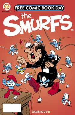 The Smurfs return to Free Comic Book Day with two stories never-before-seen in the U.S.! Gargamel has tormented the Smurfs time and time again, always vowing his revenge on the small creatures. But what happens when he is forced to tangle with someone bigger than him — a nasty Ogre? Find out in "The Ogre and the Smurfs!" Also featuring comics from two of the hottest new Papercutz series, Annoying Orange and Ariol, a new series from Emmanuel Guibert!