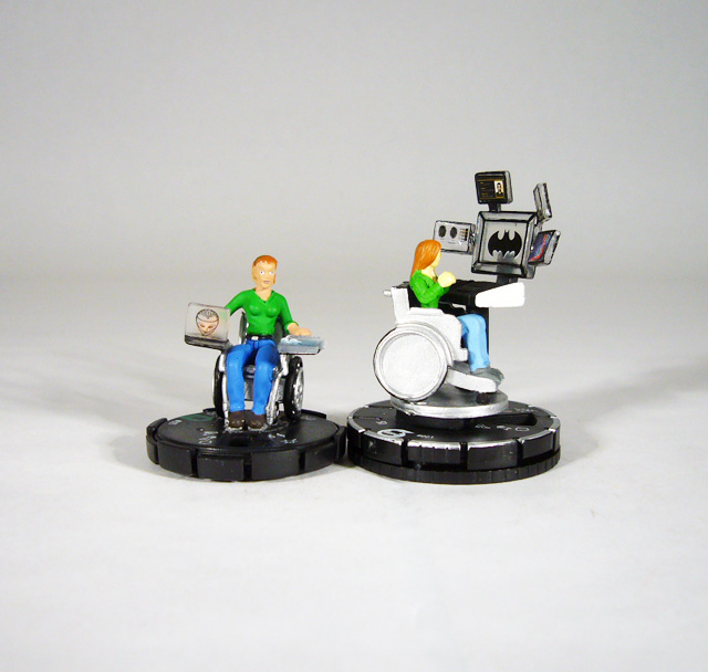 Meanwhile, Black Canary has a standard power on every number of her dial, mixing it up with both ranged and close combat attacks, mobility with Running Shot and Leap/Climb, Perplex and Outwit, and a full dial of Combat Reflexes. Her Canary Cry blasts to a printed range of 5 with two targets, and she sports the Batman Ally team ability for Stealth. Finally, when Oracle is on the map Black Canary’s “In Contact with Oracle” trait lets her modify any of her combat values by +1 when given a non-free action!