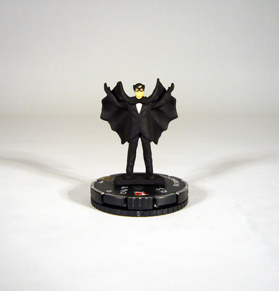 The insane professor Hugo Strange is one of Batman’s oldest villains, first appearing way back in 1940, but he only just now made his debut in HeroClix with last month’s Batman set. That version captured him in his typical “mad scientist” duds, but now he returns in one of his most iconic appearances dressed as Batman! Obsessed with the Caped Crusader Strange trains in secret and even fights crime as Batman, wearing his then blue, gray, and yellow costume. The professor may be all Batman from the waist down, but his uncovered head is... well, Strange, bald with his chinstrap beard and iconic round glasses.