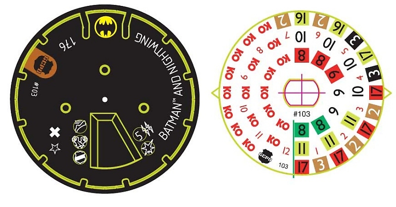 The Streets of Gotham OP kit comes with two special objects, and they are both very cool. First up is the Bat Signal finally making its object debut in HeroClix! This 2 point heavy object recreates the modified searchlight from the comics complete with a circular base and barrel-like light. A dark gray-green, the Signal features a big bat symbol over a translucent yellow lens through which you can see a silver paneled interior. The reverse side of the Signal has some cool circuitry designs and more silver accents. While usable as a heavy object, the Bat Signal can also be used in a very thematic way. Give a character adjacent to it a power action and “summon” a friendly character (who was further than 8 squares away) next to it!