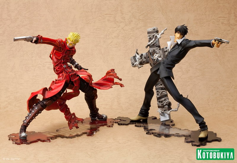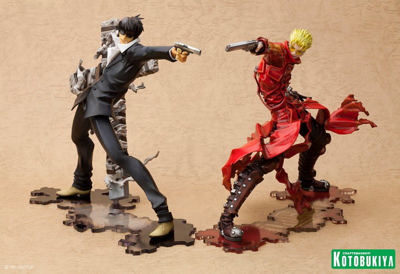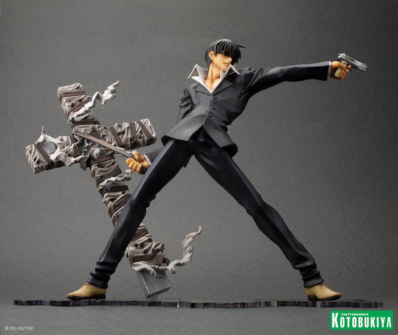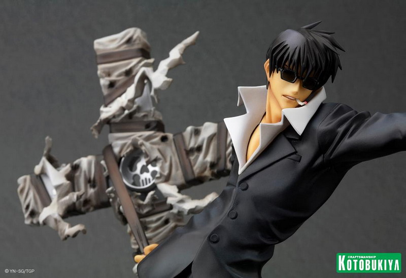 Joining Vash the Stampede (see HERE) in Kotobukiya's new Trigun: Badlands Rumble ARTFX J collection comes Nicholas D. Wolfwood. In scale with Vash at over7 ½ inches tall (1/8 scale) on an included display base, Wolfwood is set for release later in 2013 (Vash releases in February, so soon after that). Pretty nice, though I do wish he was sculpted firing Punisher (his huge cross-shaped gun).