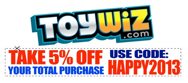 ToyWiz.com has thousands of in-stock items. Use the coupon code HAPPY2013 and receive 5% off your purchase! Shop from an incredible selection of the newest and most popular action figures, toys, and collectibles including: