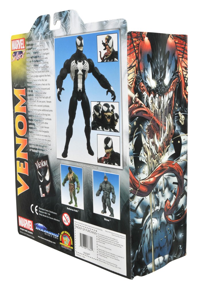 Diamond Select Toys shares with fans new packaged shots of their Marvel Select Venom. Sculptor Jean St. Jean has crafted three heads, four hands and removable “Madness” style back attachment for Eddie Brock that will allow collectors to create whichever version of Venom they like the most (I see most collectors going with the Madness look - very cool). Look for Marvel Select Venom in stores late February.