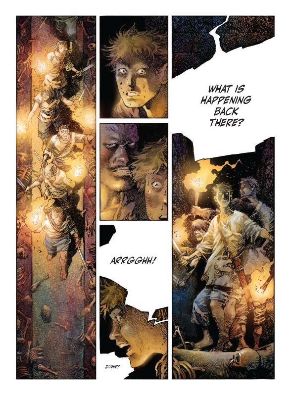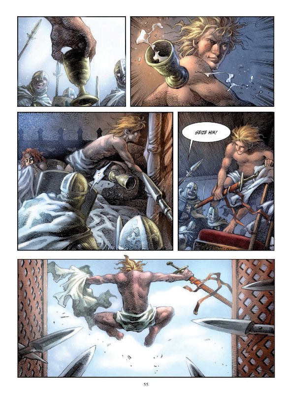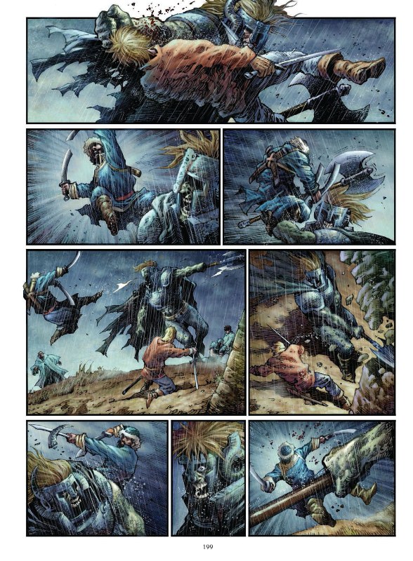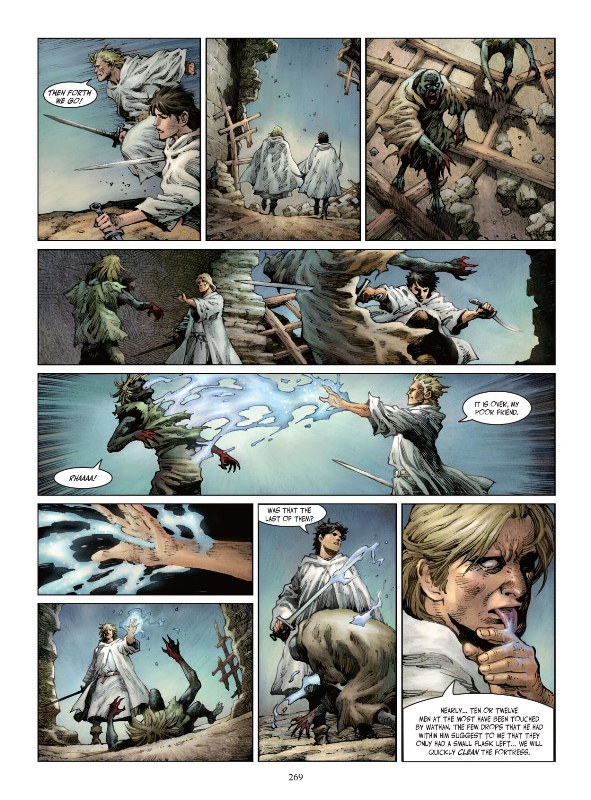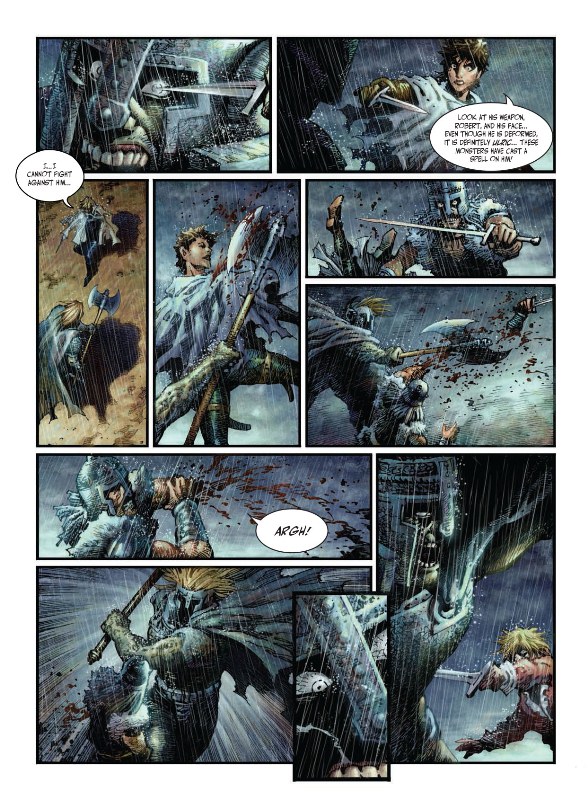 Along with impressive artwork, the page design and story layout is brilliant. Truly cinematic in scope, the use of 10 or more panels on a single page combined with the use of multiple double-page spreads gorgeously reveal the setting and characters while propelling the plot forward. Broken into three separate volumes; Vol 1 - The Silver-Eyed Specter, Vol 2 - The Door of Hermes and Vol 3 - The Battle of Mansoura; the book's central plot stays firm while each individual volume reveals separate themes and motivations, culminating in a postlude of sorts which readers will never see coming.