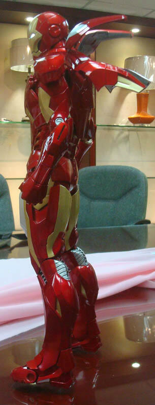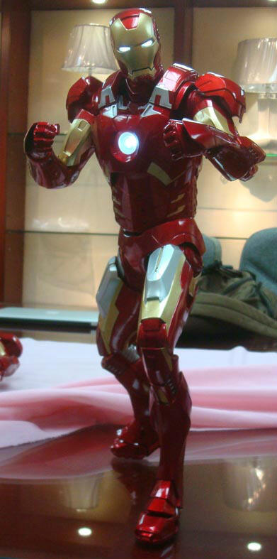 NECA shares with fans some new pre-production photos (they are still doing some minor tweaking) of their upcoming Marvel Avenger's Quarter Scale Iron Man. On shelves in the month of May to celebrate the release of Iron Man 3, this massive figure joins previously released Captain America (read our review HERE). Priced at around $94.99, the approximately 18 1/4" tall Iron Man is sculpted wearing his Mark VII armor and his head, chest and palms all individually light up. Includes two pairs of hands and the four aero-flaps on his back are articulated too.