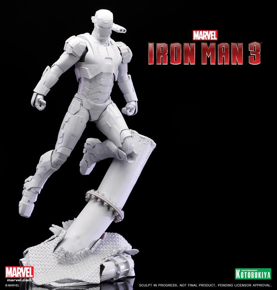In addition to the Mark VII and Mark 42, Kotobukiya will be releasing War Machine as part of their new Iron Man 3 ARTFX Statue collection. Pictured is a behind the scenes look at the piece in unpainted prototype form. Looking sharp!