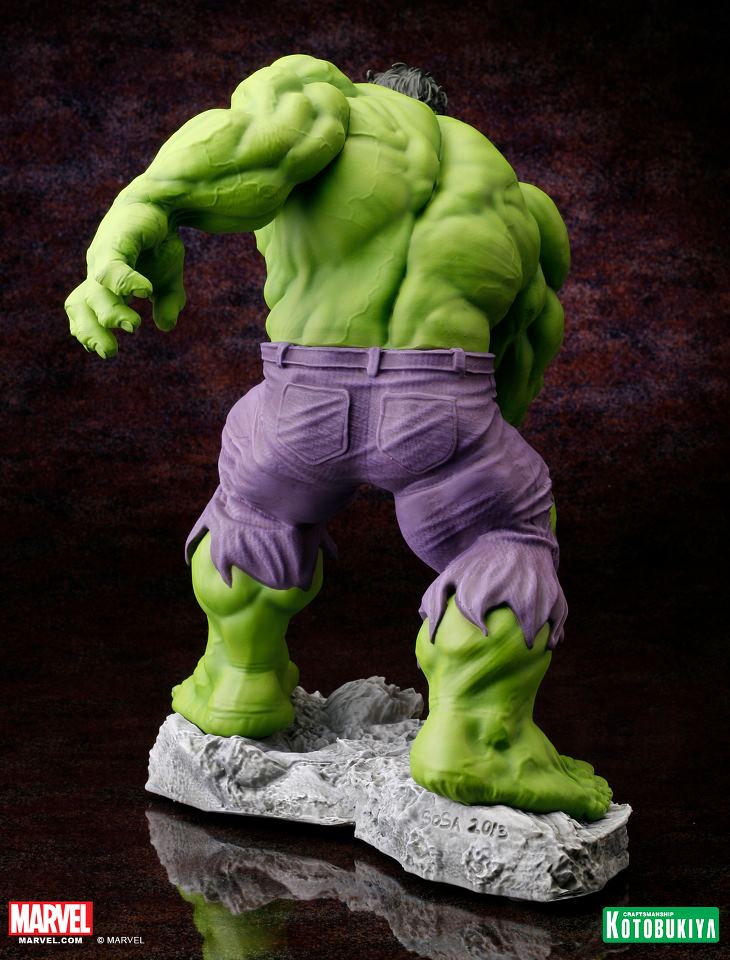 The Hulk has been a staple superhero of the Marvel Comics universe for years, battling foes across the universe in epic storylines. Mild-mannered scientist Dr. Bruce Banner was experimenting with highly volatile gamma radiation when an explosion bathed him with that green energy, transforming him into the enormous aggressive powerhouse known as the Hulk. As the massive creature Banner has been a menace to humanity as well as one of its greatest heroes, and in that respect has served with distinction among Marvel’s premiere champions. Celebrating his look in those comics comes an incredible brand new Fine Art Statue, Hulk Classic Avengers.