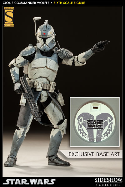 Collectors ordering the Sideshow Exclusive will receive a Commander Wolffe CC-3636 Display Base with Wolfpack Logo.
