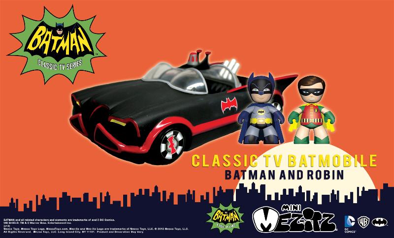 Mezco's Mez-Itz line will also debut the Batman Classic TV Series toys, including the Batmobile. While the Batmobile had appeared throughout the Batman comic books, the iteration designed by George Barris for the classic TV series was radically different and quickly became a fan favorite. Batman and Robin both fit in the Mez-Itz Batmobile, as do most other Mez-Itz figures.