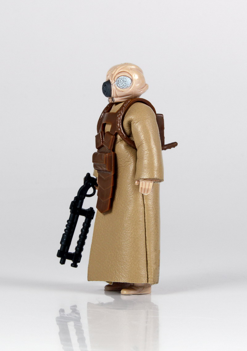 Gentle Giant presents Zuckuss to their Jumbo Kenner Star Wars figure line. The last of the bounty hunters seen in The Empire Strikes Back to receive the jumbo treatment, Zuckuss was scanned from a mint 3 3/4” Kenner original. Roto and injection molded using durable plastics, this fully-articulated jumbo figure includes a faithfully reproduced blaster rifle.