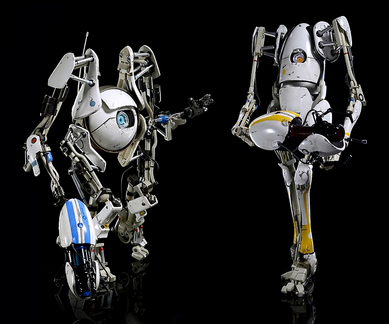 ThreeA Toys shares with fans new photos of their 1:6th scale Portal 2 action figures: the humerous robot duo of Atlas and P-body. Fully articulated and detailed, each 'bot features a Light-Up Optical Sensor and Light-Up Handheld Portal Device. Pre-orders for these two figures opens sometime this month (May 2013) at bambalandstore.com. Pricing and release date to be announced then.
