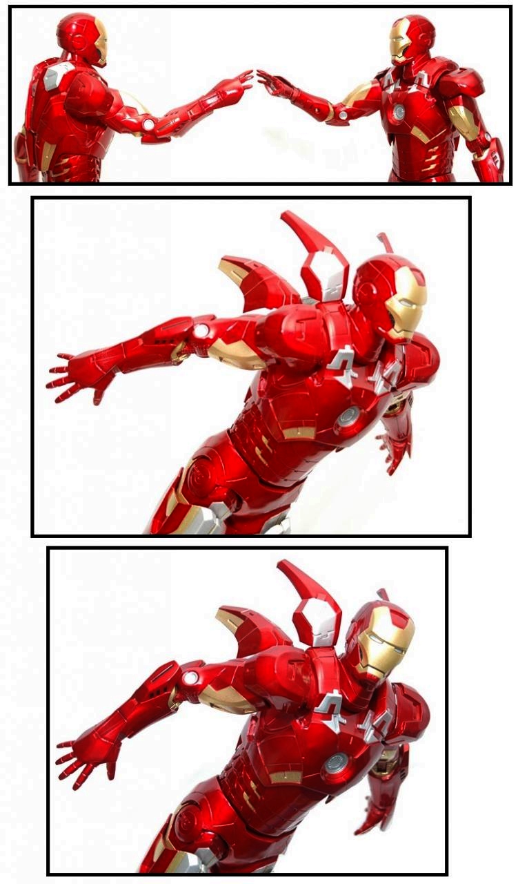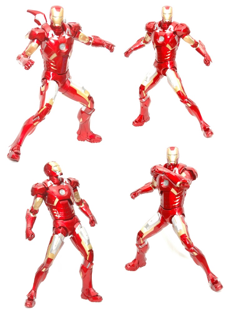 Like the previously released Captain America, Iron Man too features an impressive variety of articulation points, including a ball-in-socket head, a twist neck, ball-joint shoulders, swivel biceps, double-hinge elbows, ball-in-socket wrists, a twist waist, a twist and pivot chest, ball-joint hips, twist thighs, double-hinge knees, ball-in-socket ankles and hinge toes.