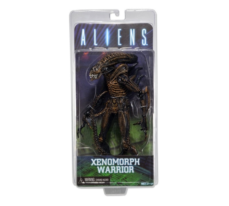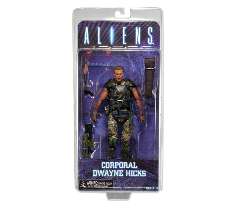 NECA's first assortment of Aliens action figures are now shipping to retail. Based on James Cameron's 1986 sci-fi classic, this series stars Colonial Marines' Corporal Dwayne Hicks and Private William Hudson along with a Xenomorph Warrior (Brown Highlights).