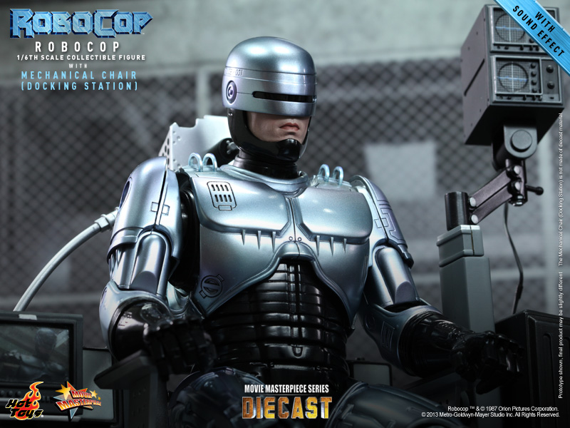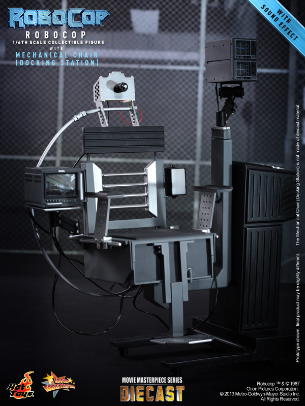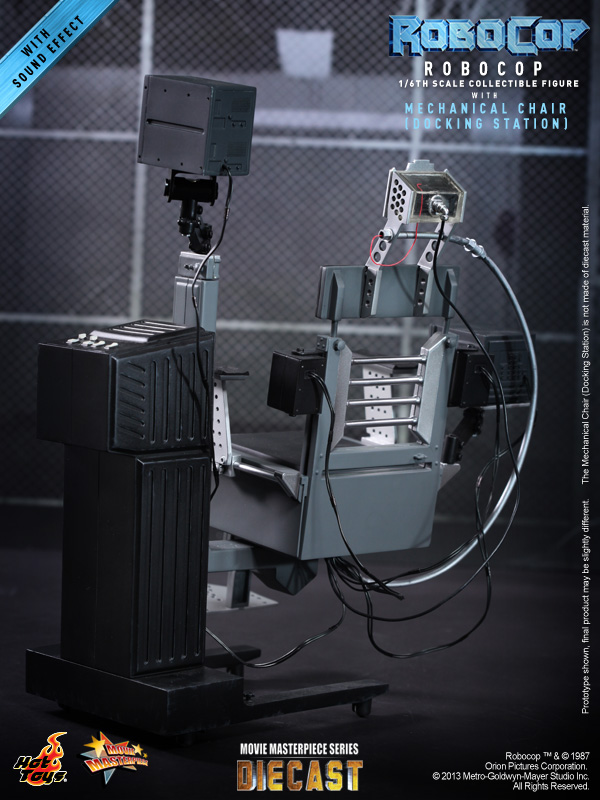 In addition to a new and improved 1:6th scale RoboCop action figure (see HERE), Hot Toys will be releasing a deluxe package that includes a mechanical chair, aka the Docking Station seen in the classic 1987 sci-fi film.