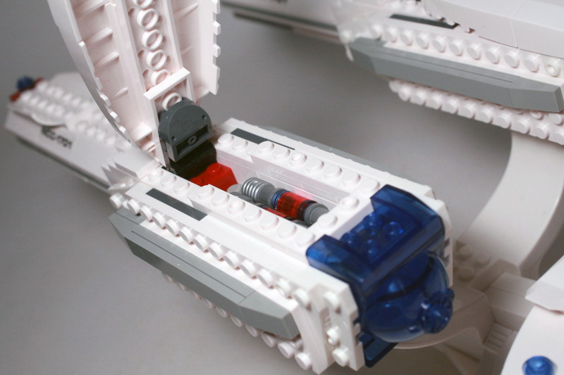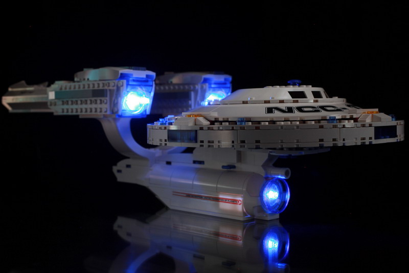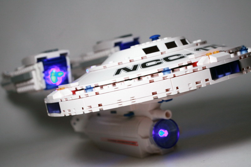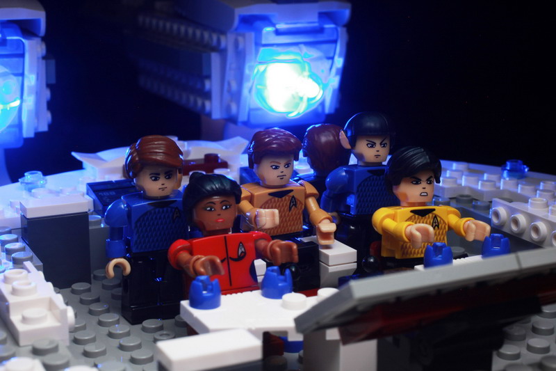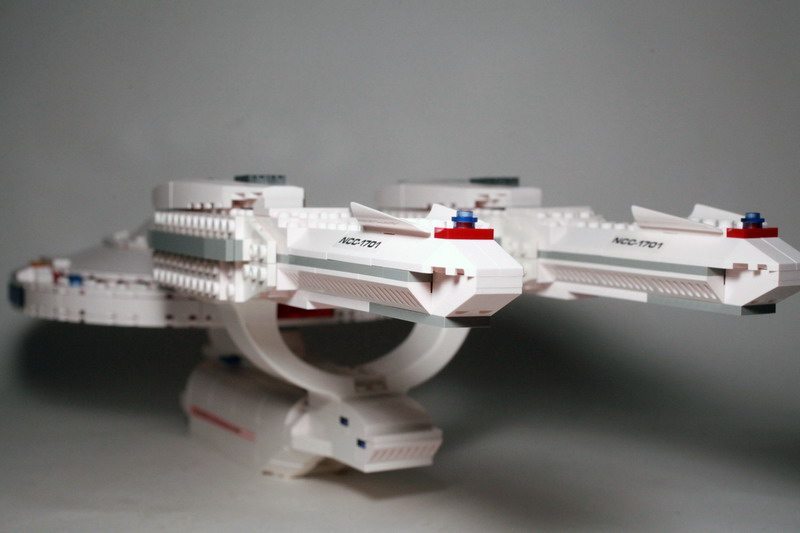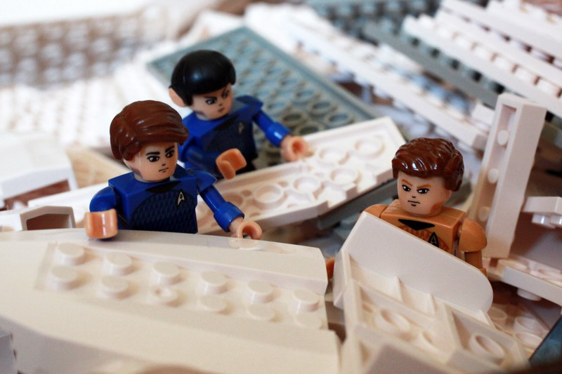 Building the U.S.S. enterprise is no small feat, and will take approximately two hours of your time. The color instructions are easy to follow for the most part but there is one section that is problematic. There’s a section beneath the main deck of the bridge that doesn’t stay snapped together. It’s an area that could be superglued together if you so desired and would not hurt the overall integrity of the ship. It actually might improve upon it since you won’t have to deal with bricks falling out so often.