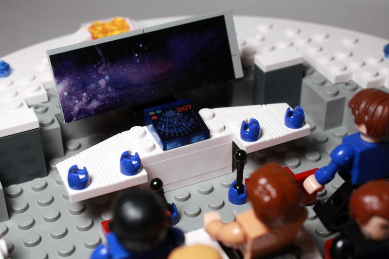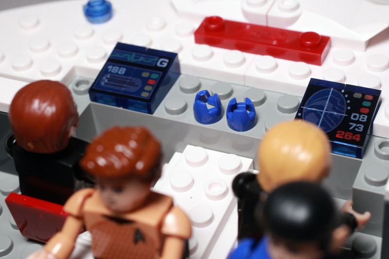 The bridge serves as a mini playset for our KREONs complete with computers and a large view screen. Decals are included for more color and details. Unfortunately, the Kreons will need to be removed prior to attaching the lid to the Enterprise.