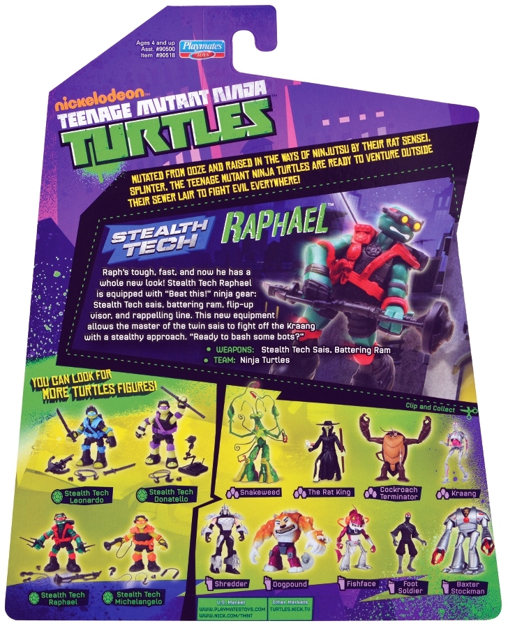 Playmates Toys announces new Stealth Tech Teenage Mutant Ninja Turtles. Hitting store shelves this July (2013), this all-new assortment includes the four Turtles equppied with high-tech gear, along with two new villains: Cockroach Terminator and Rat King.