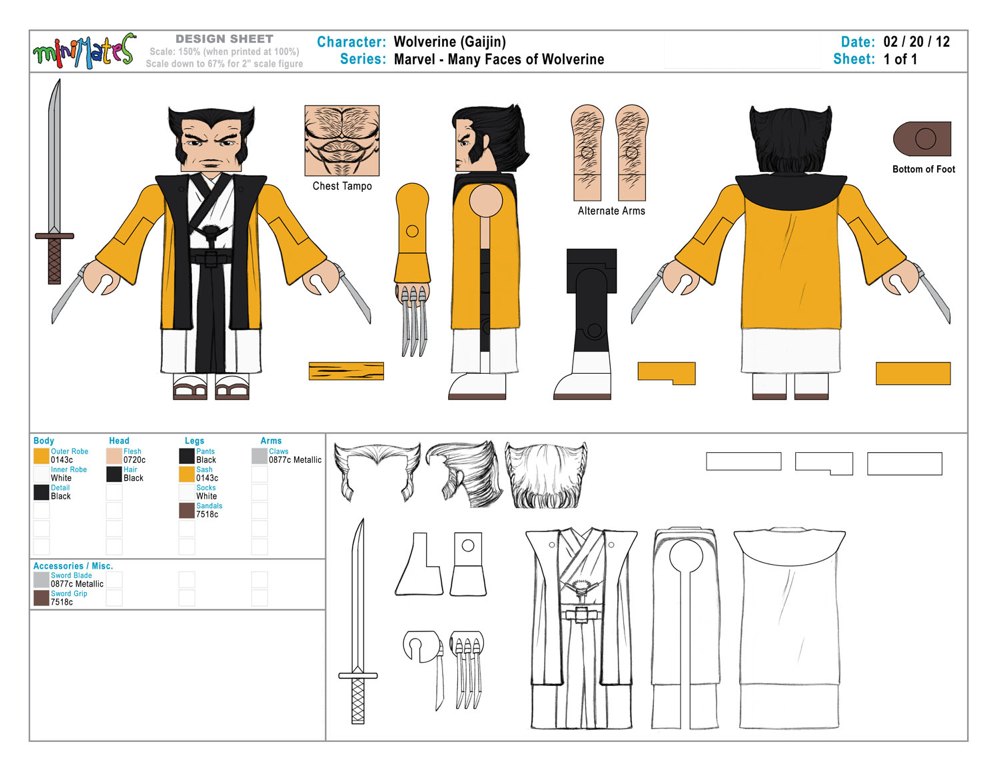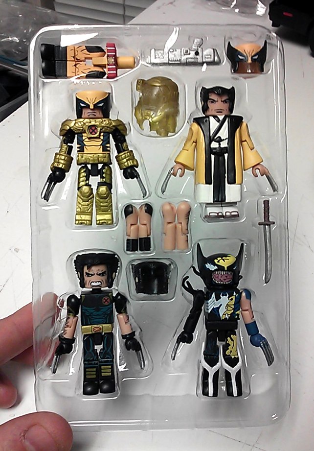 Each Minimate stands 2 inches tall, with a variety of interchangeable parts and accessories, including a shirtless look for Logan-San, and removable helmet and armor for Spacesuit Wolverine, to reveal a modern Wolverine costume. The set will be available at the Diamond Select Toys booth, #2607, in a window box, for the price of $20. It is limited to 3000 pieces.