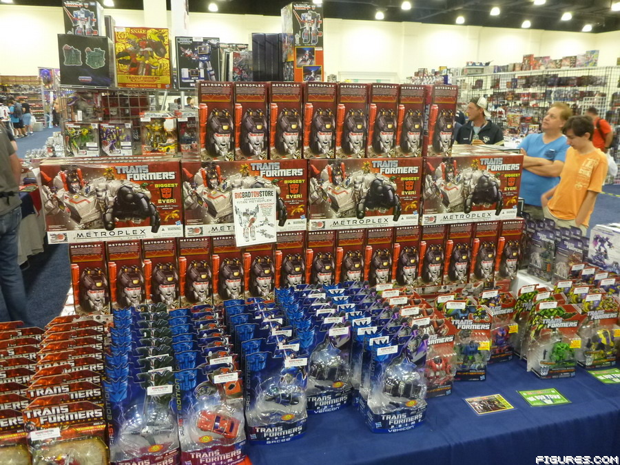Once collectors secured their exclusives, many headed toward the far corner of the exhibit hall to get an eyeful of upcoming toys at the Hasbro area. A bit understated this year, this section consisted mainly of a series of display cases plus some Transformers Prime Beast Hunters and Construct-Bots branding. CLICK HERE to check out the full scoop on the items on display there.