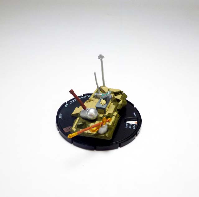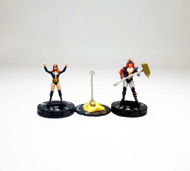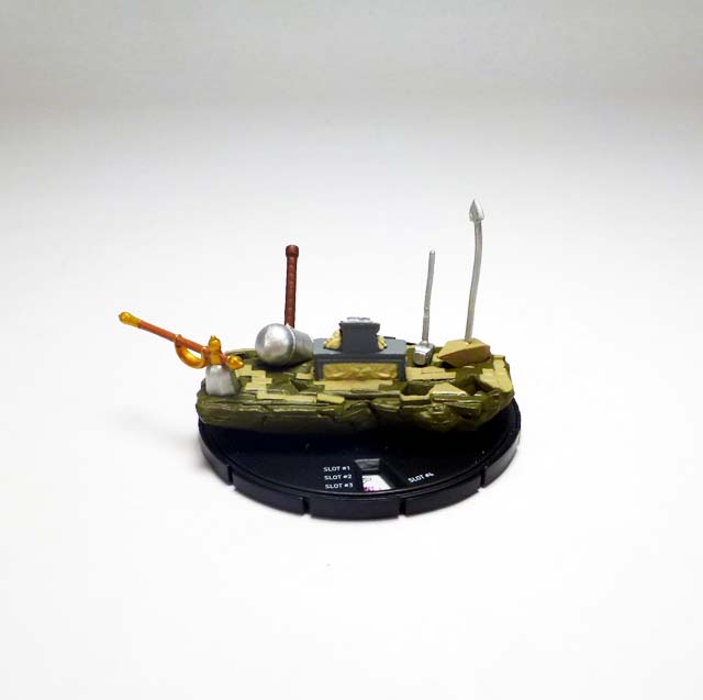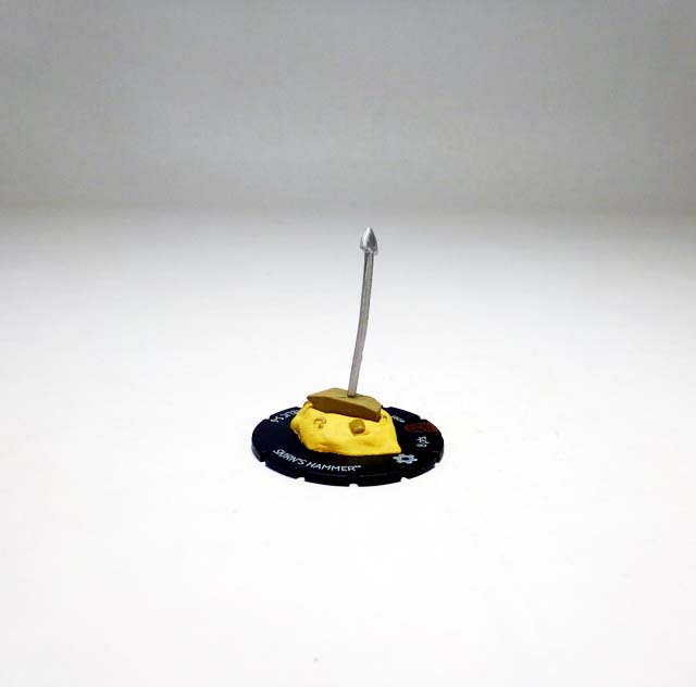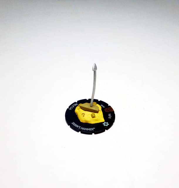 As the months go by players’ hammer collections are growing by leaps and bounds, and August’s Month 3 kit ups the ante yet again. Asgardian weapons of tremendous power, the “Mighty” hammers transform those who pick them up into mystically-charged warriors serving the Serpent. One of those artifacts crash landed in South Africa, right where supervillains Titania and Absorbing Man were coordinating diamond mining efforts. While Creel was not able to retrieve the great weapon, Titania lifted and was transformed into the mighty Skirn: Breaker of Men! The Skirn’s Hammer 3D Object follows the trend of previous items with a small hammer that fits into a specially-shaped terrain on a map square-sized base.