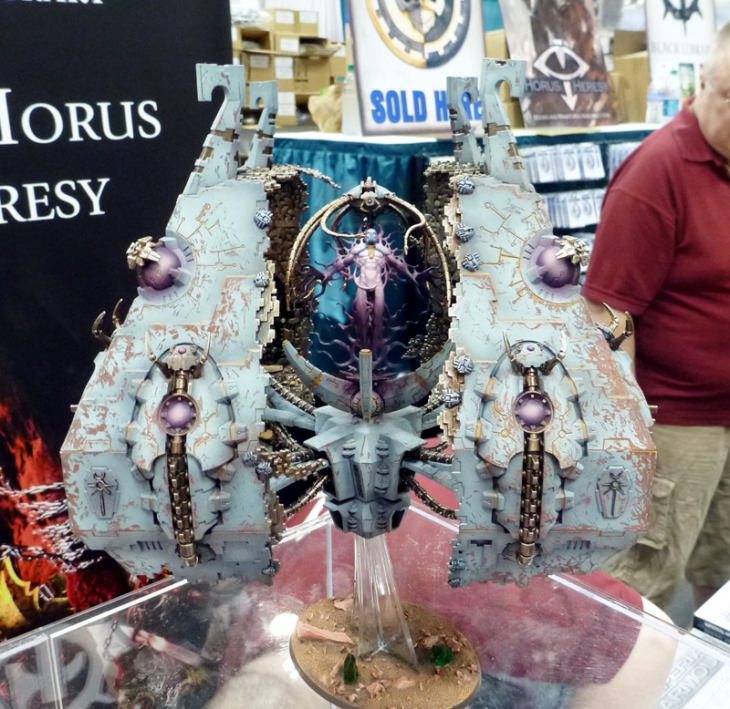 Games Workshop is always at the leading edge of miniature games with their epic properties Warhammer and Warhammer 40,000. The sci-fi version was the focus at this year's Gen Con, and a large portion of their booth was given over to an incredible battle scene utilizing hundreds of expertly painted and arranged units on a fantastically rendered terrain! On the other side of the display were plenty of products for attendees to purchase, and then a small display case with cool new items.