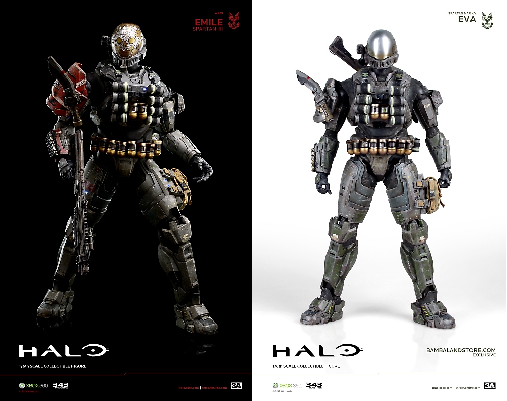 ThreeA Toys shares new photos and details on their second series of 1:6th scale HALO action figures: EMILE A-239 Spartan-III from Noble Team Six and the Bambaland Exclusive Spartan Mark V EVA. Both figures will be priced at $200 USD each and will go on sale today, August 29, at 8:59 PM EST at bambalandstore.com.