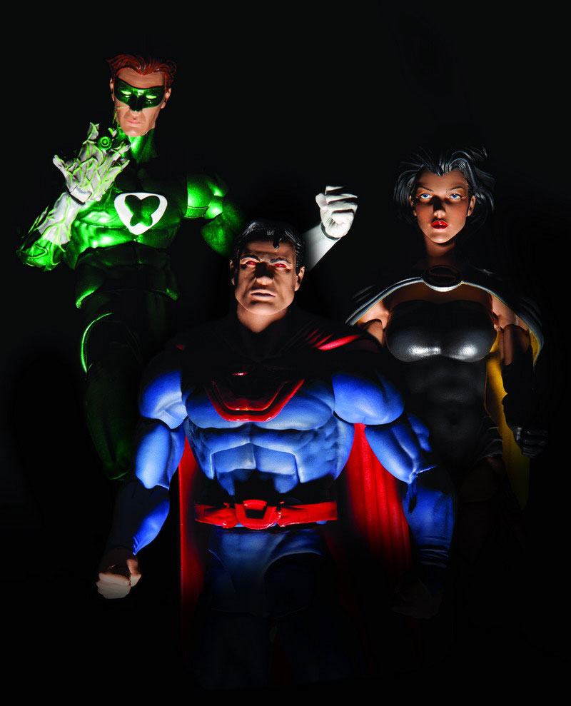To mark the release of FOREVER EVIL #1, DC Collectibles shares new images of their upcoming Crime Syndicate action figures. First previewed in our story HERE, this collection includes the villainous Johnny Quick with Atomica, Owlman, Power Ring, Superwoman, and Ultraman. Expect them in stores in February 2014 priced at $24.95 each.