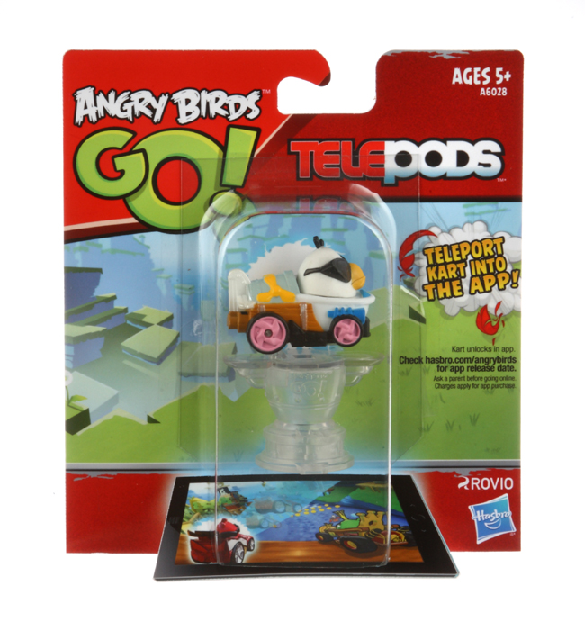 Collect your favorite ANGRY BIRDS characters and their unique karts with these single-packed racers. These packs are a great way to start your to the ANGRY BIRDS GO! TELEPODS collection! Race them against each other and then continue the racing action on your mobile device by using the included TELEPODS base to teleport your kart into the new ANGRY BIRDS GO! app! Each pack sold separately.