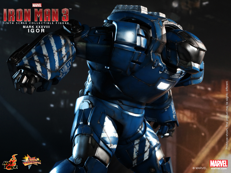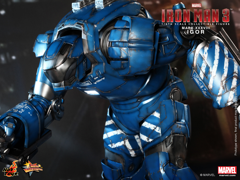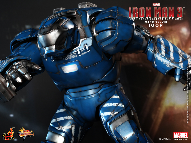 - Authentic likeness of Igor (Mark XXXVIII), the Heavy Lifting Suit, in Iron Man 3