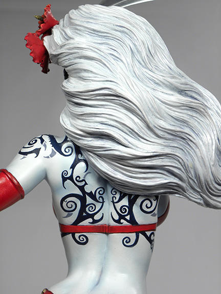 Moore’s work brings feminine power to life like no other sculptor and Lady Death La Muerta continues that tradition in grand form. Moore has created several memorable Lady Death statues over the years, and was looking to do something different and dramatic with the character, while still showcasing the character’s raw sex appeal.
