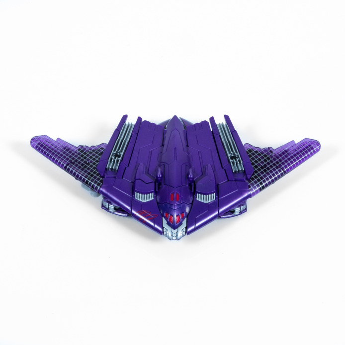 Produced in collaboration with Hasbro, the 5-inch purple and red TRANSFORMERS MEGATRON action figure inspired by Calvin Johnson mirrors the cues of his signature Nike CJ81 Megatron Trainer Max. The distinctive red cruciform pattern found on the toebox and upper of the trainer are utilized on the arms and feet of the figure. Johnson’s signature appears alongside the iconic Decepticon shield on Megatron's chest. In robot mode, the Megatron figure is designed to be broad yet agile, and the iconic “wing” jet conversion is meant to mirror Johnson’s speed and power.