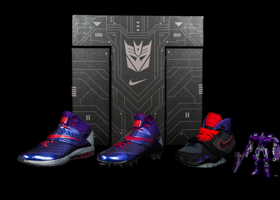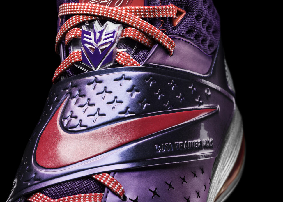 Calvin Johnson, Jr. and Nike Football has teamed up with Hasbro to create the Nike CJ81 Megatron Trainer Max. As a special addition, the Nike CJ81 Megatron Trainer Max is sold with a first ever Hasbro Transformers action figure designed for an athlete in conjunction with a shoe release.