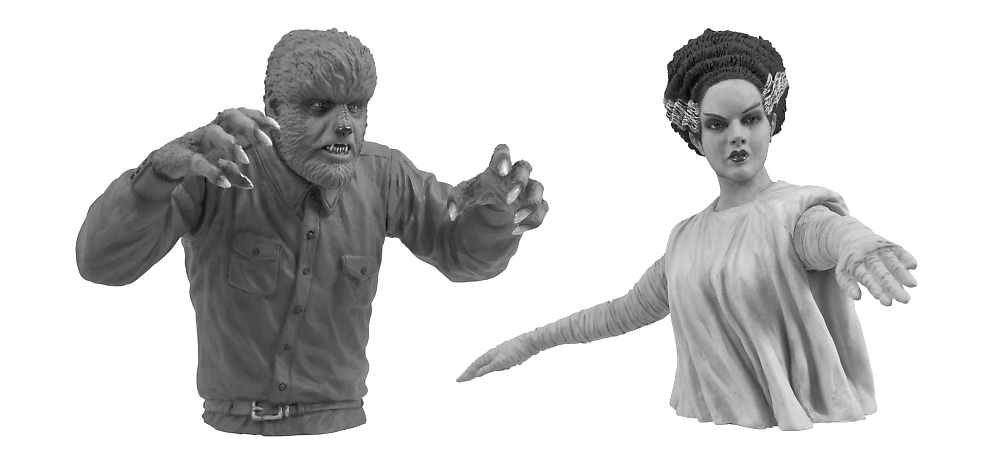 The Bride of Frankenstein is back in black and white! DST has gone old-school and drained the color out of their 9-inch portrait of his Bride. With an all-new grayscale paint scheme based on the original black-and-white film, the Bride still features collectible-quality paint and sculpting, as well as a conveniently placed coin slot in back. Sculpted by Gabriel Marquez. (Item #MAY138199, SRP: $22.99)