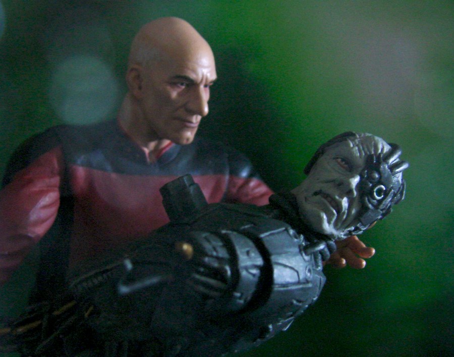 This 7-inch scale figure is based on Picard's appearance in later seasons of Star Trek: The Next Generation, and features 7 points of articulation as well as a detailed display base with removable Borg parts. Check out a new gallery of images below courtesy of DST, and look for Capt. Picard starting today at your nearest comic shop.