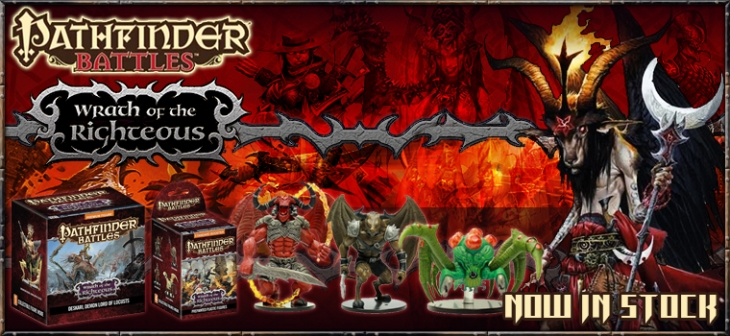 This week marks the release of Paizo's latest Pathfinder Battles expansion set, Wrath of the Righteous, and you can get yours now at Miniature Market! In stock now are plenty of boosters, bricks, and cases if you're feeling lucky, or you can shop directly from their great stock of single figures from the set. Everything from the lowly Brimorak Demon to the colossal promo Demon Lord Deskari is on sale now!