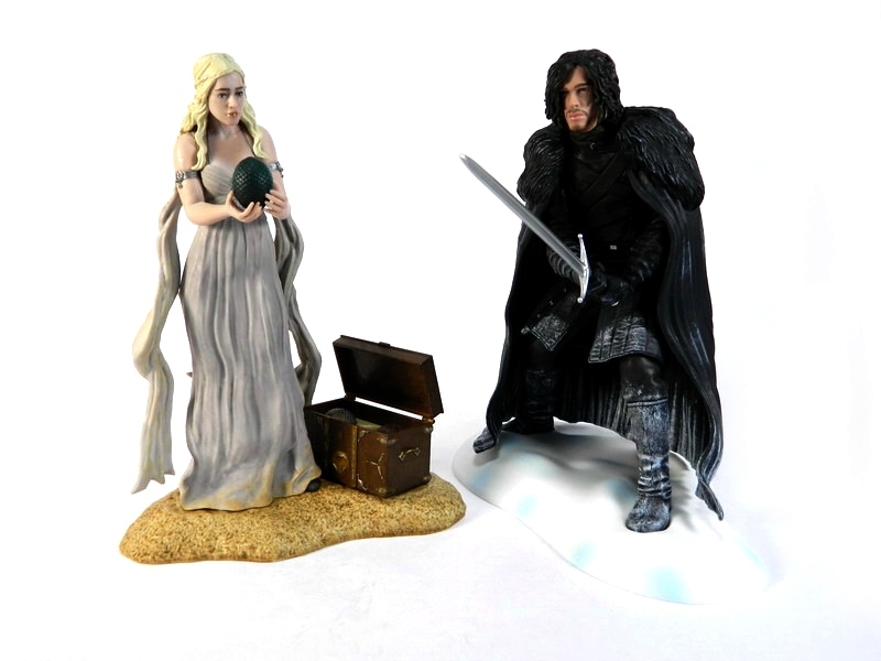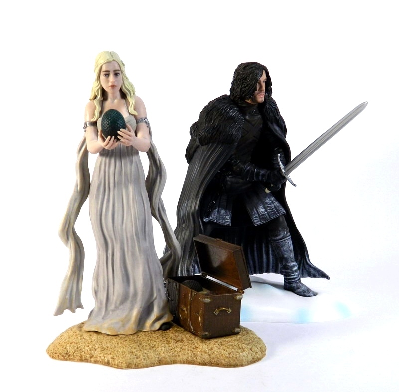 It's this revolving character roster that Dark Horse is tapping for their new series of Game of Thrones figures. Hitting retail now are the first two releases, Daenerys of House Targaryen and Jon Snow, a valiant steward in the Night's Watch. These two approximately 7 1/2 inch tall non-articulated figures are priced at a SRP of $24.99 each and available directly through Dark Horse, or fine retailers such as BigBadToyStore.com and ToyWiz.com.