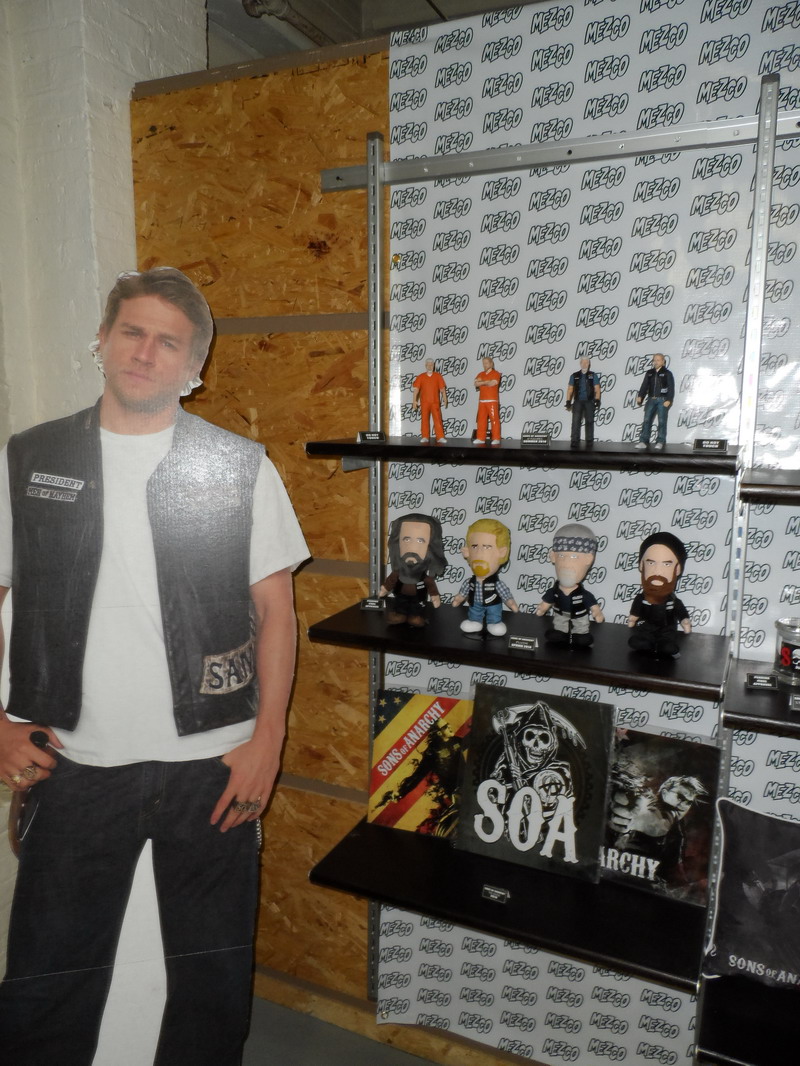 While the International New York Toy Fair is still over a week away, Mezco recently launched a preemptive strike with a private media event revealing a number of new 2014 items. Topping the list were collectibles from their latest license, Sons of Anarchy. Fans will receive figures of series stars Jackson "Jax" Teller (Charlie Hunnam) and Clarence "Clay" Morrow (Ron Perlman) in both their standard riding attire and bright orange prison jump suits. The 6 inch figures are similar to what Mezco has done for Breaking Bad, the characters featuring detailed sculpts, but no articulation. Other SOA merchandise includes plush figures, bobbleheads, keychains and other assorted novelty items.
