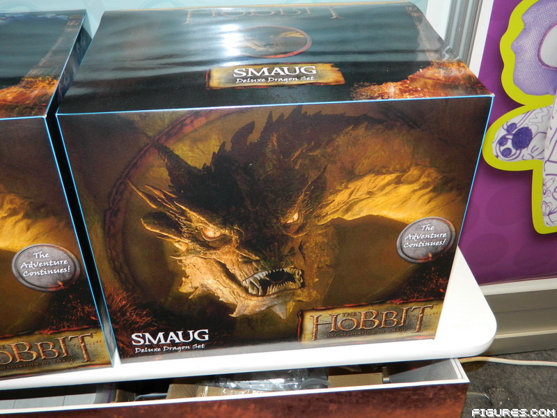 It's no secret that Hobbit fans are loving the new films but always chomping at the bit for more toys and collectibles. The Bridge Direct is there to give you your Middle-earth fix with the 3 3/4 inch (this reporter's personal favorite) and 6 inch scales which while not the most expansive have provided kids and collectors with very high quality figures starring great sculpts and chock full of articulation and accessories. So what's on deck for the Hobbit that we learned at Toy Fair? Well, we can sum up the big news with one word: Smaug! That's right, Bridge is currently working on a Smaug toy that will be coming to retail. They couldn't share any firm details with us (a very rough Smaug box at the booth was just a placeholder), but they're working on everything from size and scale to potential features, all while making sure the price point is right. We will of course get you all the news on Smaug as we hear it.