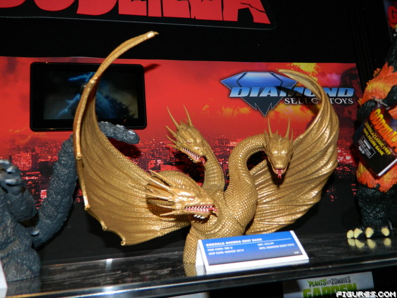 "Big G" may be rolling into theaters soon with a brand new version, but Diamond Select Toys has everything you need for your classic Godzilla fix coming this year with awesome toys and other collectibles. At New York Toy Fair 2014 we got to check out several of those, starting with the new entries in the DST vinyl bank collection featuring Burning Godzilla, the 1989 version, and Mechagodzilla plus busts of those last two and Ghidra! Look for those to start hitting store shelves next month at a price point around $35 for full size and $23 for busts. Home goods will include bottle openers in various styles, but there's one more figure set that really excited this reporter. DST will be offering a box set of Godzilla Minimates! Arriving in Winter for $19.99, the Series 1 set will include Godzilla, Mothra, Gigan, and Titanosaurus.