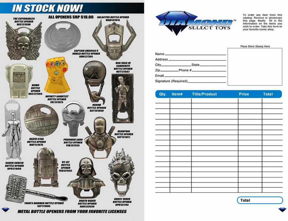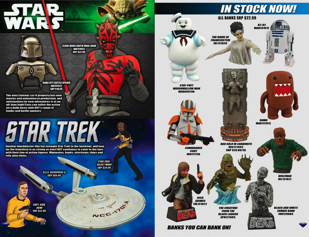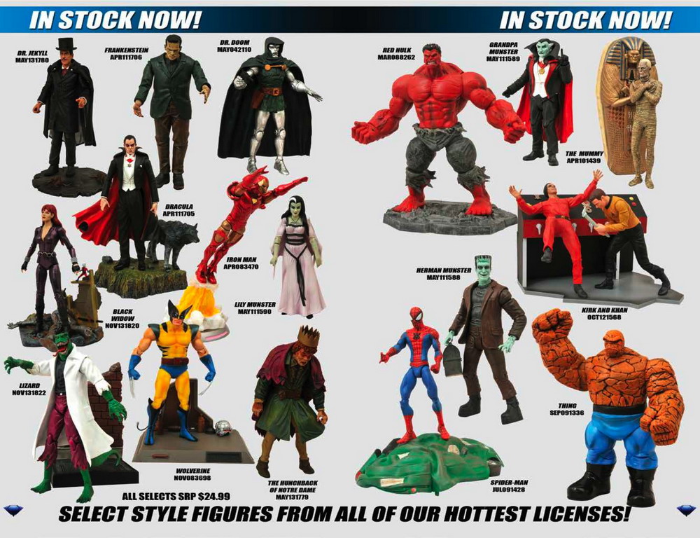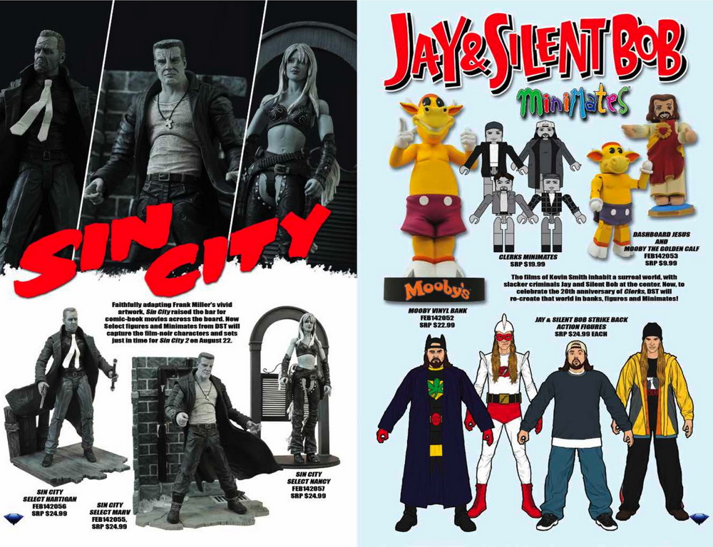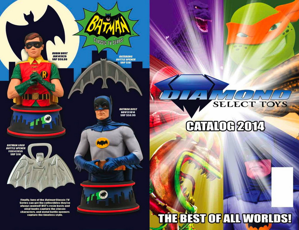 Diamond Select Toys is offering to the general public their 2014 product catalog. The catalog features 24 pages of new and in-stock items, including new offerings that were on display at this year's Toy Fair, including Godzilla, Aliens, Sin City, Kill Bill, Pulp Fiction, Plants vs. Zombies: Garden Warfare, Battle Beasts, Lost in Space, The Walking Dead, Jay & Silent Bob Strike Back, the Batman Classic TV Series, and Teenage Mutant Ninja Turtles. Collectors can pick up a physical catalog up at participating comic shops.