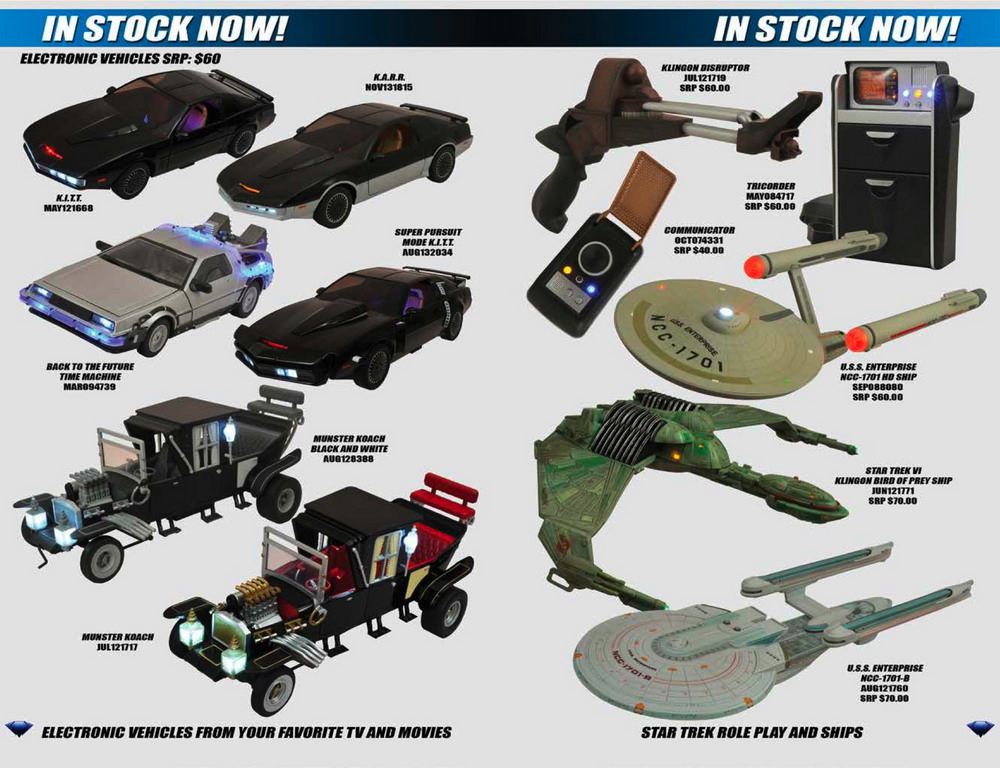 What's most interesting about this catalog is the unveiling of particular product we were not allowed to photograph at Toy Fair, including prototype images of DST's new Pulp Fiction and Kill Bill action figures and the unveiling of a new Star Trek Select Worf figure and Captain Kirk vinyl bank.