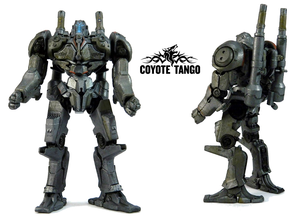 The Coyote Tango shares a similar color scheme to the Striker Eureka and Gipsy Danger; an almost naval warship vibe. However, where the Striker was a destroyer grey and the Gipsy an almost battleship blue, the Coyote appears the most metallic of the bunch painted (or not?) a battle-hardened burnished steel. NECA applied some nice weathering on this figure by using a dirty brown. It gives the Jaeger an almost rusty look, as if the raw metal was left exposed to the elements for too long. Like the Cherno, the use of red livery and tiny tamp stamps ("USAF", "34") really go a long way in making the Coyote Tango look like a real war machine.