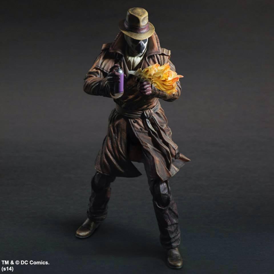 As revealed at Toy Fair last month (see our story HERE), Square Enix will be adding Watchmen to their mix of DC Comics Play Arts Kai action figures. Based on his appearance in the 2009 Zack Snyder motion picture, Rorschach will launch the new license later this year. Like all Play Arts Kai, the figure will feature numerous alterantive hands, interchangable inkblot pattern faces, and themed accessories including a lit aerosol can and gas-powered grappling gun.